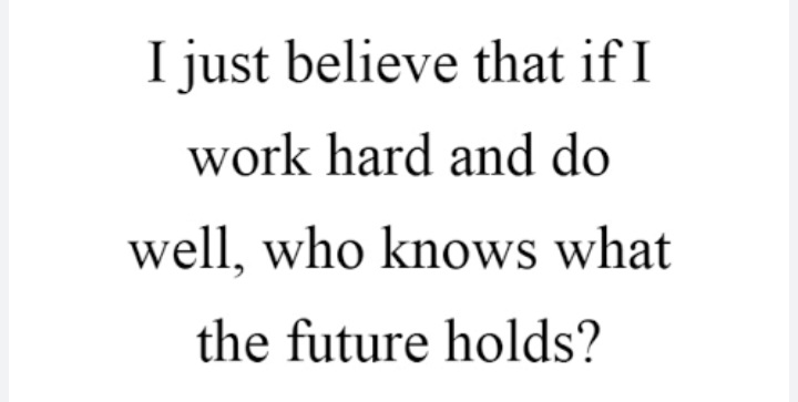 BUT WE SHOULD KEEP WORKING HARD AND DO NOT STOP UNTIL WE REACH WHERE WE WANT TO . ONE DAY EACH ONE OF US WILL DEFINITELY REACH OUR DESTINATION. UNTIL THEN WE SHOULD KEEP HUSTLING AND KEEP GROWING.